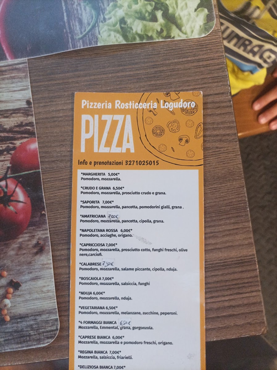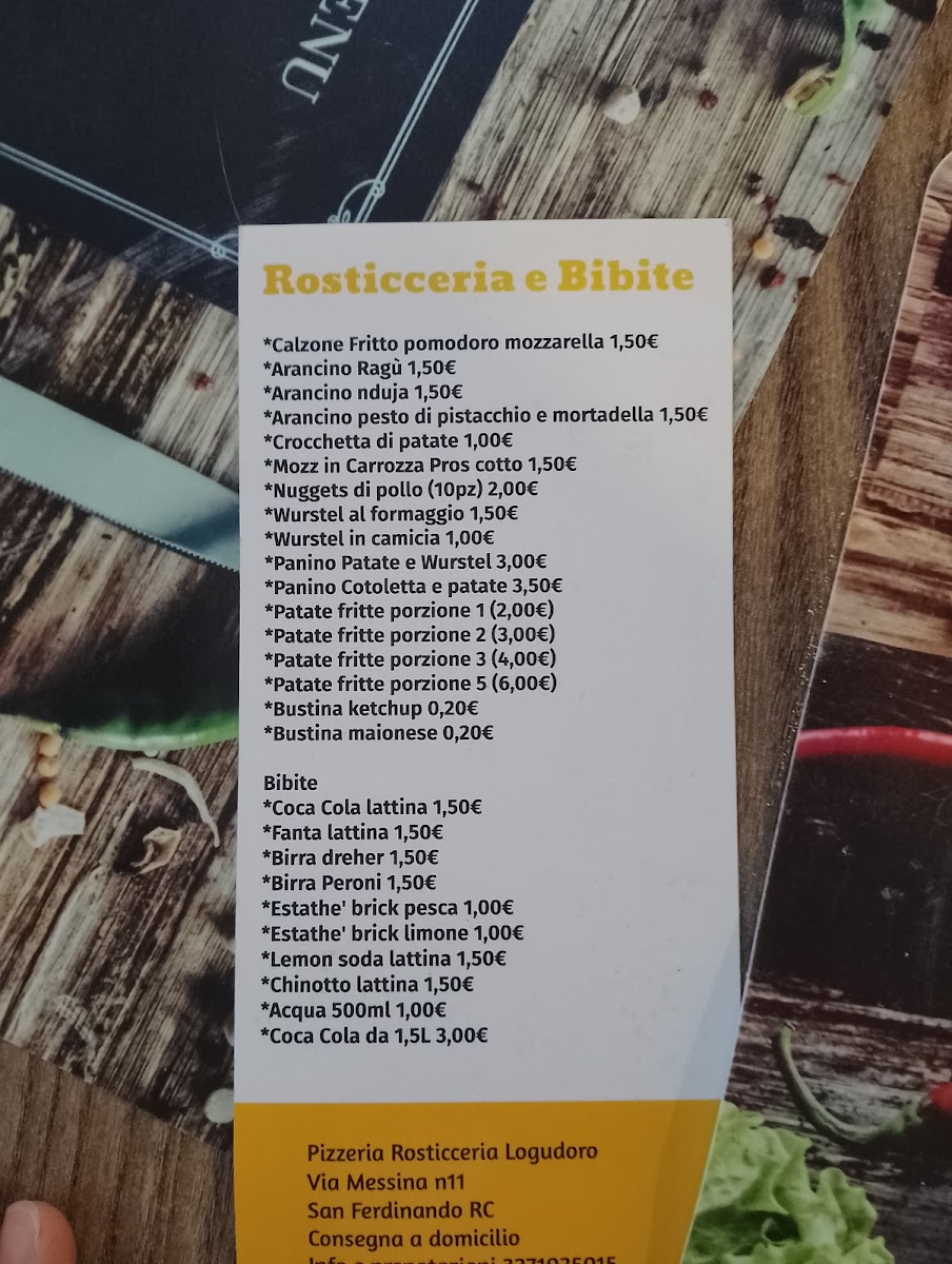 Taken as a whole, the menu at Logudoro San Ferdinando presents a satisfying balance between traditional Italian street food, comforting baked dishes, and classic pizzas, all aimed at delivering familiar flavors with generous portions. Starters such as Arancini Al Ragù and Arancino Al Rag U immediately set the tone, offering crispy exteriors and rich, savory fillings that highlight the restaurant’s focus on hearty, crowd-pleasing recipes. Fried options like Calzone Fritto Cotto E Mozzarella and Mozzarella In Carro Zza reinforce this identity, combining indulgent textures with well-loved ingredients such as cooked ham and melted mozzarella. For those looking for something more substantial, meat-based dishes like Pollo Allo Spiedo, Wurstel Al Formaggio, and Salsiccia E Friarielli provide robust flavors that feel rustic and satisfying, ideal for diners seeking a filling main course. The pizza selection completes the menu with approachable and classic choices: Pizza Margherita showcases simplicity and balance, while Pizza Vegetariana adds freshness and variety through vegetables, and Calzone Ripieno Al Forno offers a baked alternative packed with rich fillings. Overall, the menu feels cohesive and well-structured, emphasizing comfort, tradition, and variety without unnecessary complexity, making it easy for guests to find something appealing whether they prefer fried snacks, meat dishes, or classic Italian pizza.